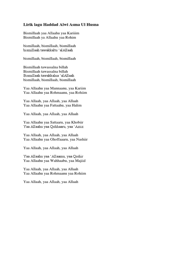 Lirik Lagu Asmaul Husna Dan Rahmat Al Quarn Pdf